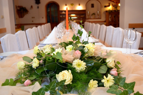 Unser Gesellschaftsraum bietet außer dem üblichen Betrieb auch eine ausreichende Kapazität zur Veranstaltung von Feiern, Hochzeiten, Konferenzen oder Firmenevents, zu denen wir Ihnen gerne einen kompletten Service anbieten. Gerne sichern wir für Sie auch eine qualifizierte pädagogische Aufsicht auf Ihre Kinder. Unseren kleinen Gästen steht einen Spielplatz im Gesellschaftsraum zur Verfügung.