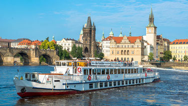 Die Perle für alle Besucher unserer Hauptstadt. Eine romantische Schifffahrt an der Moldau, bei der Sie die ganze Stadt sehen. Die Fahrt durch das leuchtende nächtliche Prag beinhaltet einen Welcome Drink (Becherovka oder Sekt) und Abendessen (warme Speisen ) böhmische und internationale Küche, mehrere Beilagen, Vorspeisen, Käse- und Wurstplatten, Salate, frisches Obst und Desserts). Live-Musik am Bord.